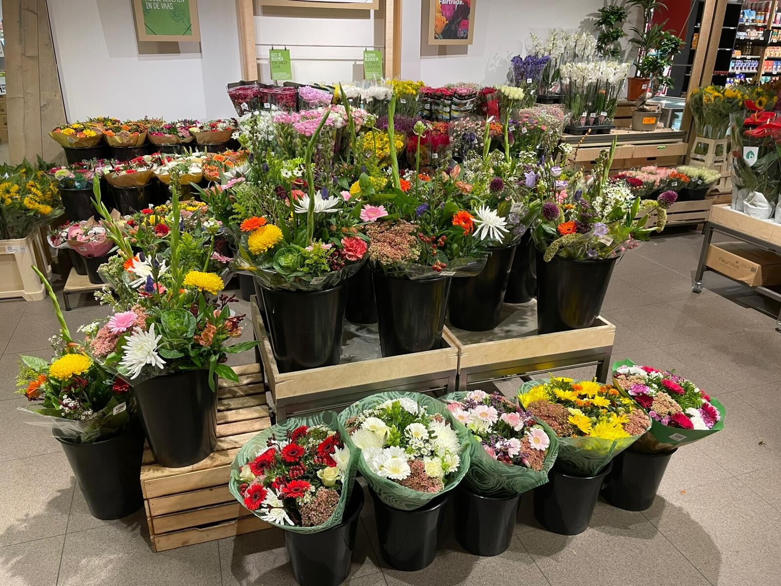Na het inloggen zie je het assortiment: bloemen, planten en accessoires.